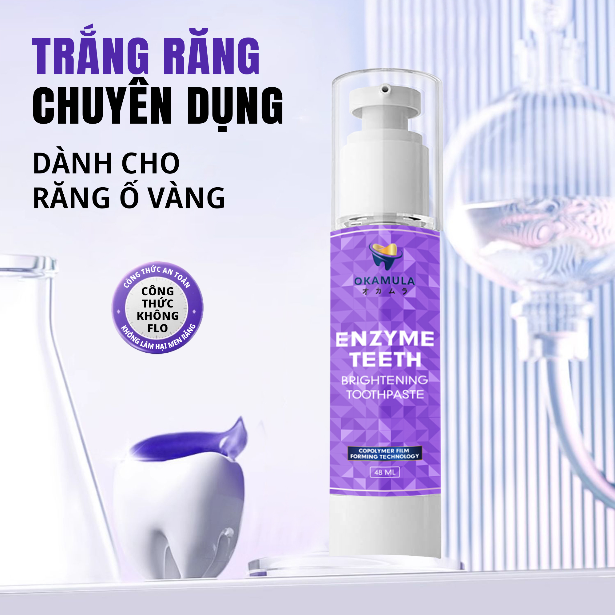 [TẶNG 1 NƯỚC SÚC MIỆNG HƯƠNG ĐÀO] Kem Đánh Răng Sắc Tím Hỗ Trợ Trắng Răng Okamula 2 in 1